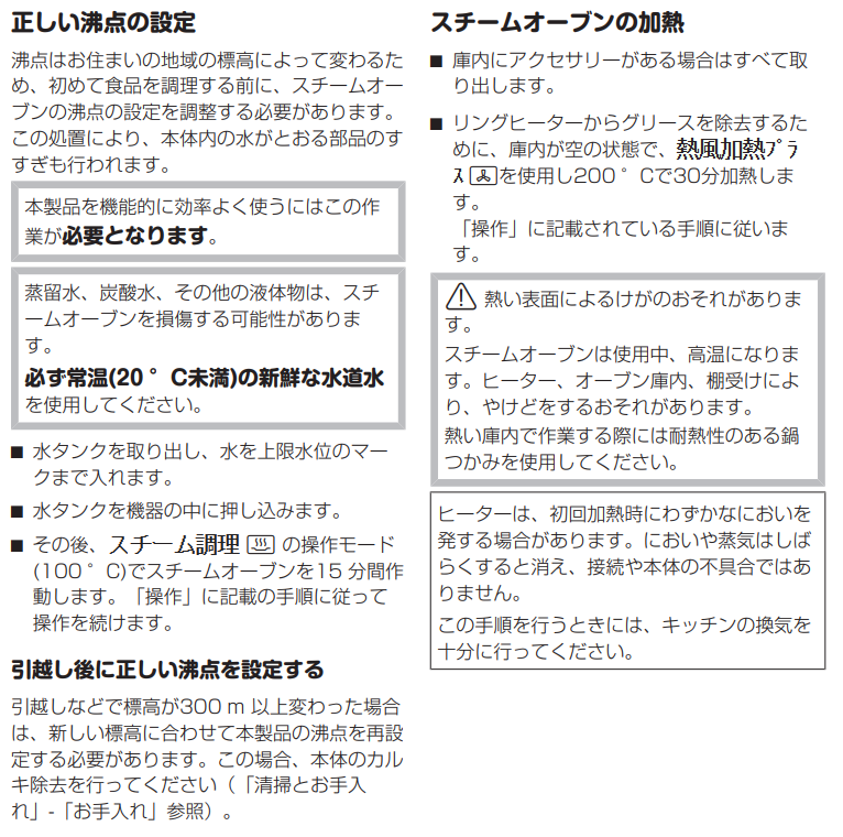 ・スチームオーブン内の水を吸うシステムは、このお手入れプログラムですすがれます。残留してる食品のくずも洗い流されます。 - 本体のカルキ除去