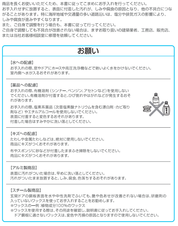 ふだんのお手入れ方法