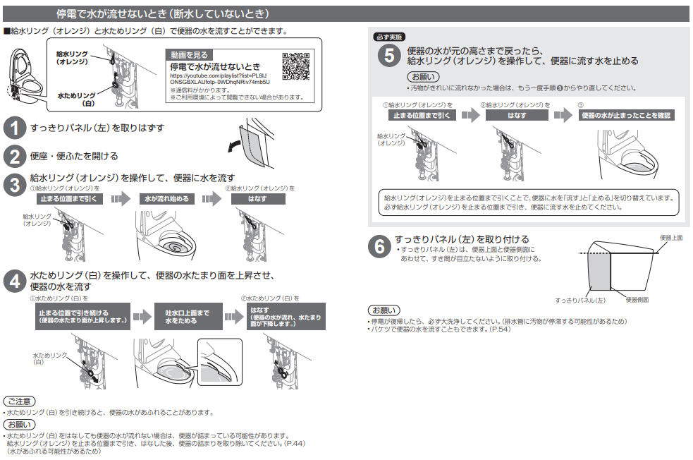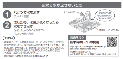 - 停電・断水で水が流せないとき